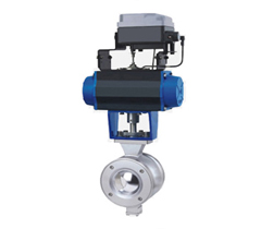 氣動V型球閥是引進國外先進技術制造的一種新型球閥。采用板簧加截的可動閥座結構,閥座與球體不會產生卡阻或脫離等問題,密封可靠,使用壽命長。V型切口的球芯與金屬閥座之間具有剪切作用,特別適用于含纖維、微小固體顆粒及料漿等介質。