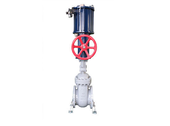 借助氣缸或手輪提供的外動力,閥桿帶動閥板上下移動實現閥門的啟閉,閥門啟閉過程中依靠雙閘板之間設置彈簧的預緊力是閥板和閥座緊密接觸,實現密封。