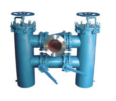 雙聯(lián)切換過(guò)濾器采用兩個(gè)三通球閥,將兩個(gè)單筒過(guò)濾器組裝在一個(gè)共同機(jī)座上,相互切換使用,清洗過(guò)濾器不必停車,保證連續(xù)生產(chǎn)。