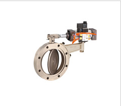 該閥以壓縮空氣為動力,通過電磁換向閥改變氣路方向,執(zhí)行氣缸推動,使固定在轉(zhuǎn)動軸上的閥板旋轉(zhuǎn)90°實現(xiàn)閥門的開啟和關(guān)閉。