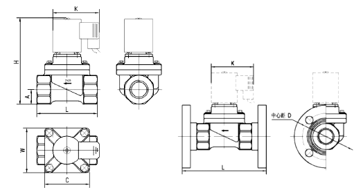 UPVC二位二通耐腐蝕電磁閥外形尺寸圖
