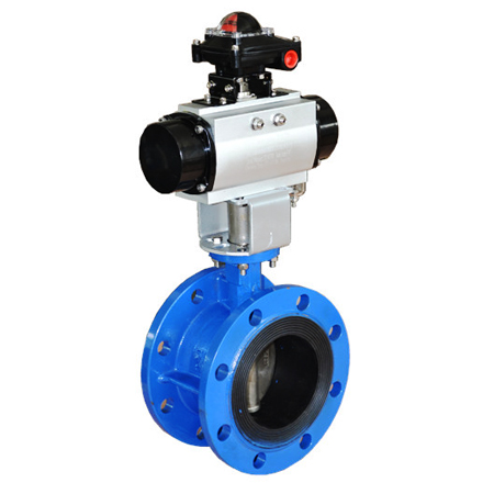 法蘭式氣動蝶閥由氣動執行器和PN1.0/PN1.6中線法蘭蝶閥組合貳成。氣動蝶閥配行程限位開關、電磁閥、三聯件及0.4-0.7MPa氣源可實現開關操作,并送出一對無源觸點信號指示閥門的開關。與電氣定位器配套,輸入4-20mADC信號及0.4-0.7MPa氣源即可實現智能控制,它是以壓縮空氣為動力,閥桿帶動閥芯在閥體內轉動90℃,可以實現全開——全閉的動作。該產品按其密封性能分為金屬密封與軟密封。可廣泛應用于石油、化工、輕工、制藥、造紙、汽車等工業自動控制系統中作遠距離集中控制或就地控制。