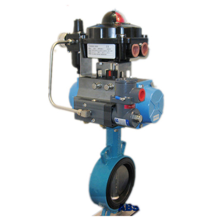 防爆氣動蝶閥由氣動執行器和中線蝶閥組成,氣動蝶閥配行程防爆限位開關、防爆電磁閥、三聯件及0.4-0.7MPa氣源可實現開關操作,并送出二對無源觸點信號指示閥門的開關。與防爆電氣定位器配套,輸入4-20mADC信號及0.4-0.7MPa氣源即可實現智能控制,實現對壓力、流量、溫度、液位等參數的調節。它是以壓縮空氣為動力,閥桿帶動閥芯在閥體內轉動90℃,可以實現全開——全閉的動作。該產品按其密封性能分為金屬密封與軟密封??蓮V泛應用于石油、化工、輕工、制藥、造紙、汽車等工業自動控制系統中作遠距離集中控制或就地控制。