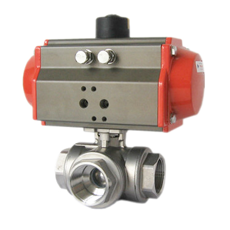 螺紋式氣動三通球閥可分為L型和T型兩種流向。L型用作分流,T型有4組流向(請見下圖)可做分流也可以做合流。氣動三通球閥用于介質流向的切換,能使相互垂直的兩個通道連通三通球閥一般采用兩閥座結構,亦可根據用戶要求采用四閥座結構。四閥座密封三通球閥具有造型美觀、結構緊湊合理,它不僅可實現介質流向的切換,也可使三個通道相互連通,同時也可關閉任一通道,使另外兩個通道連通,靈活控制管路中介質的合流或分流。