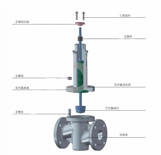 ALSO單座襯氟調節閥,采用閥體與內件全部襯氟結構,有效阻隔了腐蝕介質對閥門中金屬材質的腐蝕。金屬閥體內腔采用齒式加工處理。使內襯材料完全與金屬接合,延長內襯材料的使用壽命與性能。閥桿密封采用F46波紋管密封與V型PTFE填料兩種組合密封,完全消除了介質從閥桿出向外漏的可能。不平衡式全襯控制閥特別針對低壓常溫工況下極具腐蝕性的介質使用。