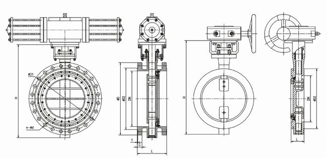 進口金屬硬密封法蘭蝶閥外形尺寸--