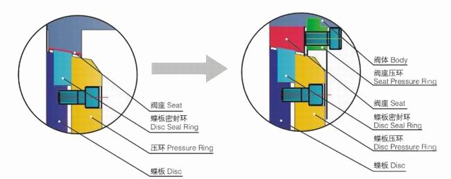 3.偏心三,閥座推體軸偏離閥軸中心線,這樣可以在關閉和開啟過程中消除摩擦作用,并且實現環繞整個閥座的均勻一致的壓縮密封效果。