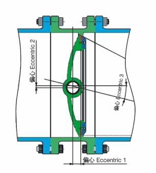 1.偏心一,閥桿旋轉中心線與閥座中線偏離一定距離,保證密封面的完整性。