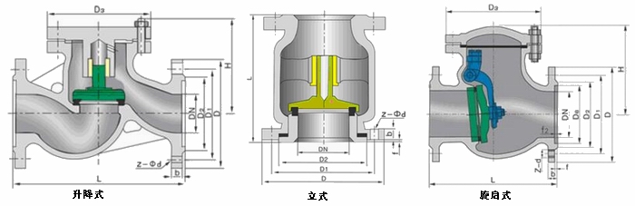 其閥瓣沿著通道中以線作升降運動,適用于輕小口徑的場合,升降止回閥一般只能安裝在水平管路。
