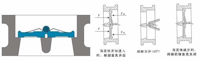 ALSO進口對夾雙瓣止回閥亦稱之為蝶式雙瓣止回閥,閥板為兩個半圓,且采用彈簧強制復位,適用于中小口徑的場合,當介質按規定方向流動時,閥瓣受介質力的作用,被開啟;介質逆流時,因閥瓣自重和閥瓣受介質反向力的作用,使閥瓣與閥座的密封面密合而關閉,達到阻止介質逆流的目的