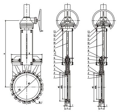 ALSO刀閘閥表面為拋丸或噴涂處理,其結(jié)構(gòu)可以做成硬密封和軟密封結(jié)構(gòu),通過閘板在關(guān)閉到底時,閘板斜切面碰到閥體上的鍥塊,使得閘板緊靠密封面起到密封效果,并且閘板底部的斜切面具有切斷介質(zhì)的功能,使得閥門不易受介質(zhì)的堵塞卡阻。