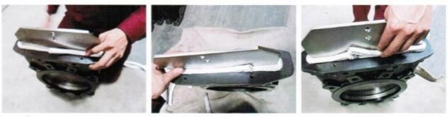 裝入閥座鋼圈,并用錘子在內(nèi)環(huán)各個位置小心敲打使之到位