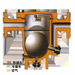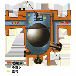 2.當冷凝水進入疏水閥時,空氣從閥口(A)排出,浮球隨冷凝水液位上升,冷凝水從閥口(B)排出。