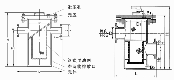 1.ALSO籃式過濾器有法蘭式、焊接式和內(nèi)螺紋式,按結(jié)構(gòu)分為直通式、高低式;