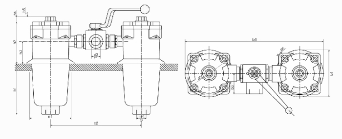 1.雙筒回油過濾器由兩個單筒回油過濾器通過一個可切換的三通球閥連接組成, 在系統不關閉的情況下通過三通切換球閥完成雙桶切換,以便完成檢修更換新濾芯