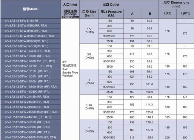 工作壓力 Pressure:Class 150-2500