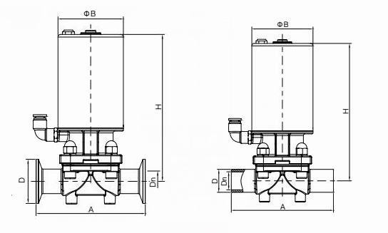 無菌隔膜閥根據其結構特點,堆薦下圖安裝有利于閥門清洗后完全排泄,不易造成液體滯留閥門內部