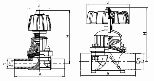 二片式(雙層膜片PTFE+EPDM)由EPDM和PTFE組成的膜片,該膜片特點在閥門處于關閉狀態時,膜片本身形狀就能和閥體密封,從而降低了膜片承受力,延長膜片的壽命