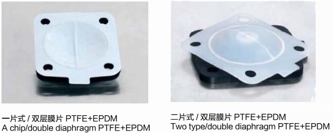 -片式(雙層膜片PTFE+EPDM)PTFE膜片具有高抗化學腐蝕性,極高的穩定性,彈性好,壽命長,密封性高,無冷變性,以及不受溫度的波動影響的性能,無論是熱循環,冷循環,海水蒸汽消毒系統