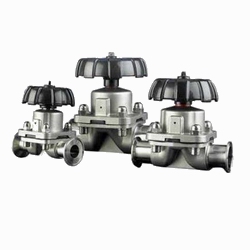 ALSO進口衛生級隔膜閥啟閉件是一塊用軟質材料制成的隔膜片,它將閥體內腔與閥蓋內腔隔開。一個彈性的的膜片,用螺桿連接在膜片上,膜片由閥桿傳動閥瓣操作而上下移動,順時針旋轉手輪帶動膜片下降,逆時針旋轉手輪膜片提升,而造成通路,當壓縮件下降,膜片就壓在閥體密封脊梁面上,即關閉閥門,隔膜閥適用于開關及節流之用。