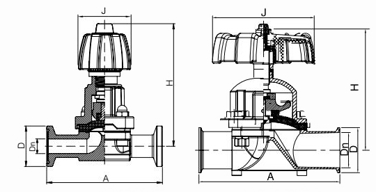 1.膜片提供閥體密封和閥座密封,里面沒有路徑通到外部環境,所以該閥門適用無菌過程。