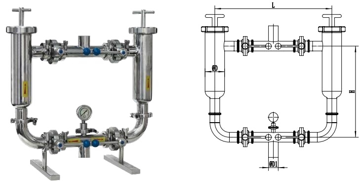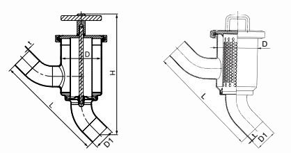 1.衛生級角式過濾器進口與出口成90°垂直,進口是缸體同心口,出口是缸體垂直口,通常安裝在兩條平行管道上