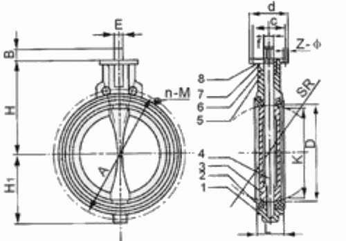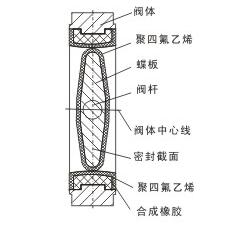 密封結(jié)構(gòu)采用聚四氟乙烯、合成橡膠構(gòu)成復(fù)合閥座、其特點(diǎn)在于閥的彈性仍由合成橡膠提供并利用聚四氟乙烯的摩擦系數(shù)低、不易磨損、不易老化等特性,從而使蝶閥的壽命得以提高。其密封原理和結(jié)構(gòu)特點(diǎn)同普通中線型蝶閥相同。