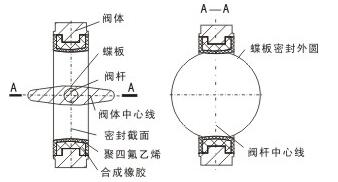 密封結(jié)構(gòu)采用聚四氟乙烯、合成橡膠和酚醛樹脂構(gòu)成復(fù)合閥座、使閥座在具有彈性的同時強(qiáng)度更好。同時將蝶板用聚四氟乙烯全包覆,使蝶板具有較強(qiáng)的抗腐蝕性能。其密封原理和結(jié)構(gòu)特點(diǎn)同普通中線型蝶閥相同。