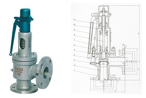 帶扳手彈簧微啟式安全閥連接法蘭標準按JB/T……94/系列1。