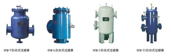 GCQ-L自潔式水過濾器濾芯采用高強度的Johnson楔形濾網,通過壓差控制、定時控制自動清洗濾芯。當過濾器內雜質積聚在濾芯表面引起進出口壓差增大到設定值,一般設定值為0.04MPa,或定時器達到預置時間時,電動控制箱發出信號,驅動反沖洗機構。